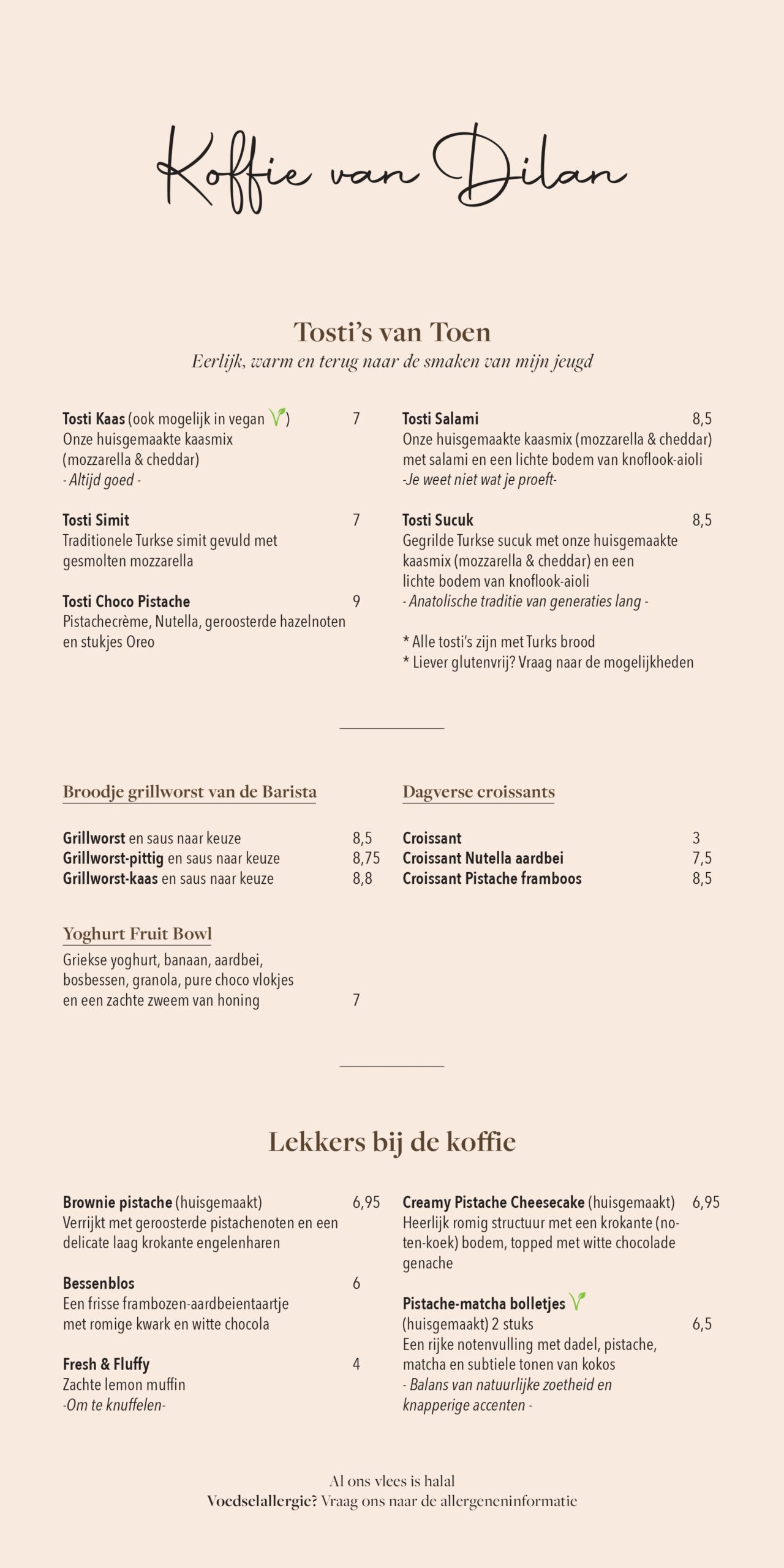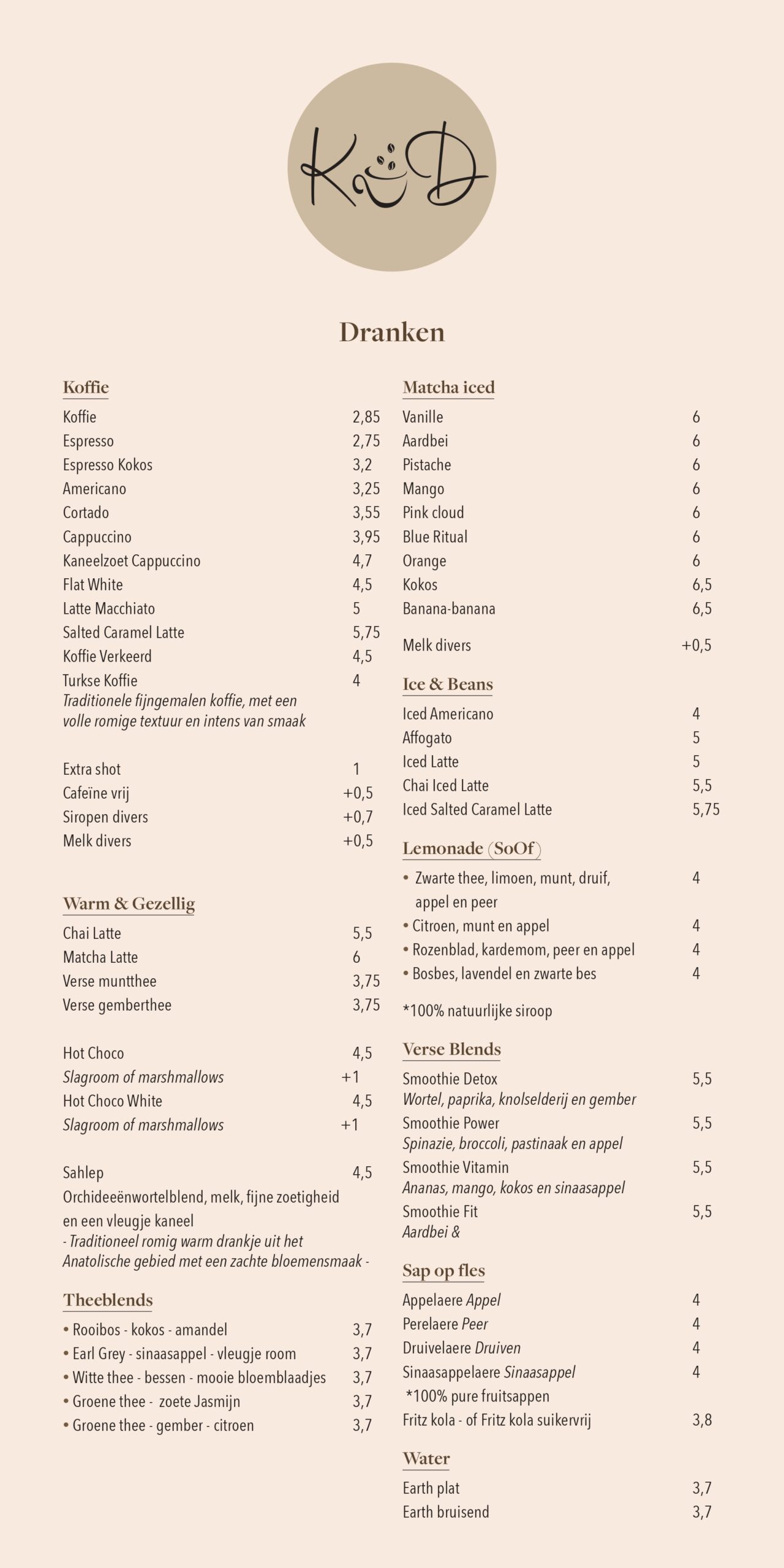 Elk detail van ons menu is zorgvuldig samengesteld om je een unieke ervaring te bieden. Van perfect gebalanceerde koffie tot gezonde opties en huisgemaakte smaken met een speciale twist. Laat je verrassen door onze combinatie van traditie en creativiteit in elke hap en slok.